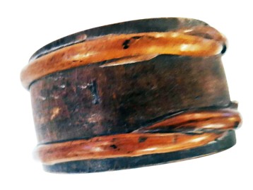 Exceptional Revolutionary War era stave canteen with pewter spout made in America using virgin hardwood and pine. One of the best small personal size canteens I have ever seen in my 70 years of collecting Americana. From the James Boyd Family, Patrick County, Virginia 2 ¾” x 5” Collected by Henry Wilson, Virgilian, VA; Robert Thebert, Sr, Deansboro, NY